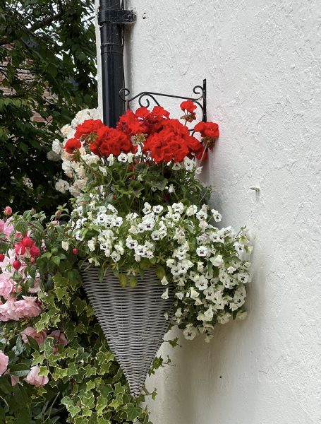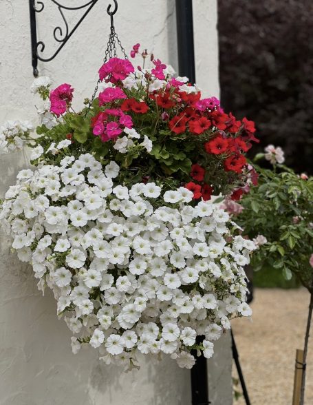 Flowers in a hanging basket or potted plants outside the house increase the beauty of a property.